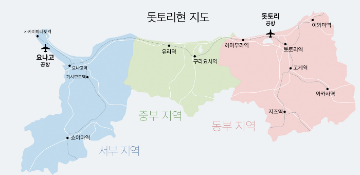 돗토리현은 일본의 본섬인 혼슈의 서쪽에 위치한 곳입니다. 바다와 산에 둘러싸여 자연환경이 다채로운 지역으로 유명 관광지가 아닌 일본 소도시의 숨은 매력을 찾는 분에게 추천합니다.